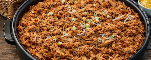Gevuld met heerlijke pulled pork.