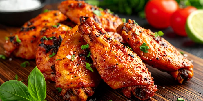 Cajun style chicken Wings zijn een populaire Amerikaanse snack die bestaat uit gegrilde kippenvleugels bedekt met een licht pittige coating.