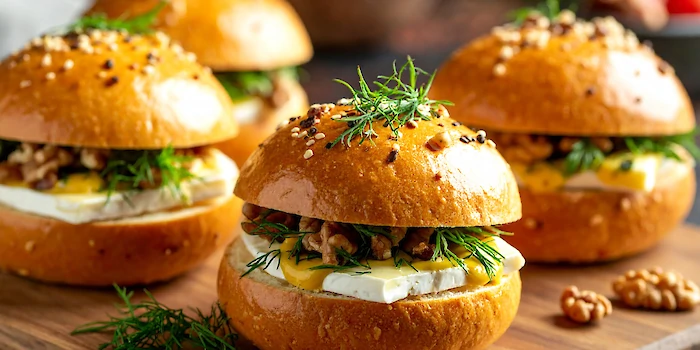- Waldkorn roombrie met kruidenroomkaas, komkommer, zongedroogde tomaat en walnoten - v